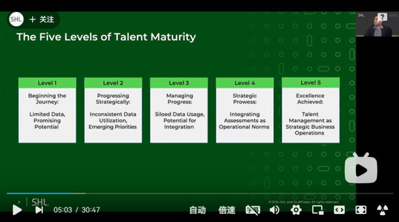 在本次直播中,SHL才管理解决方案全球总监Suhail Ramkilawan将探讨如何在组织中实现成熟的人才洞察,并为您阐述SHL人才洞察成熟度模型,并从中能为企业提供极具实用价值的最佳实践指南和的注意事项。